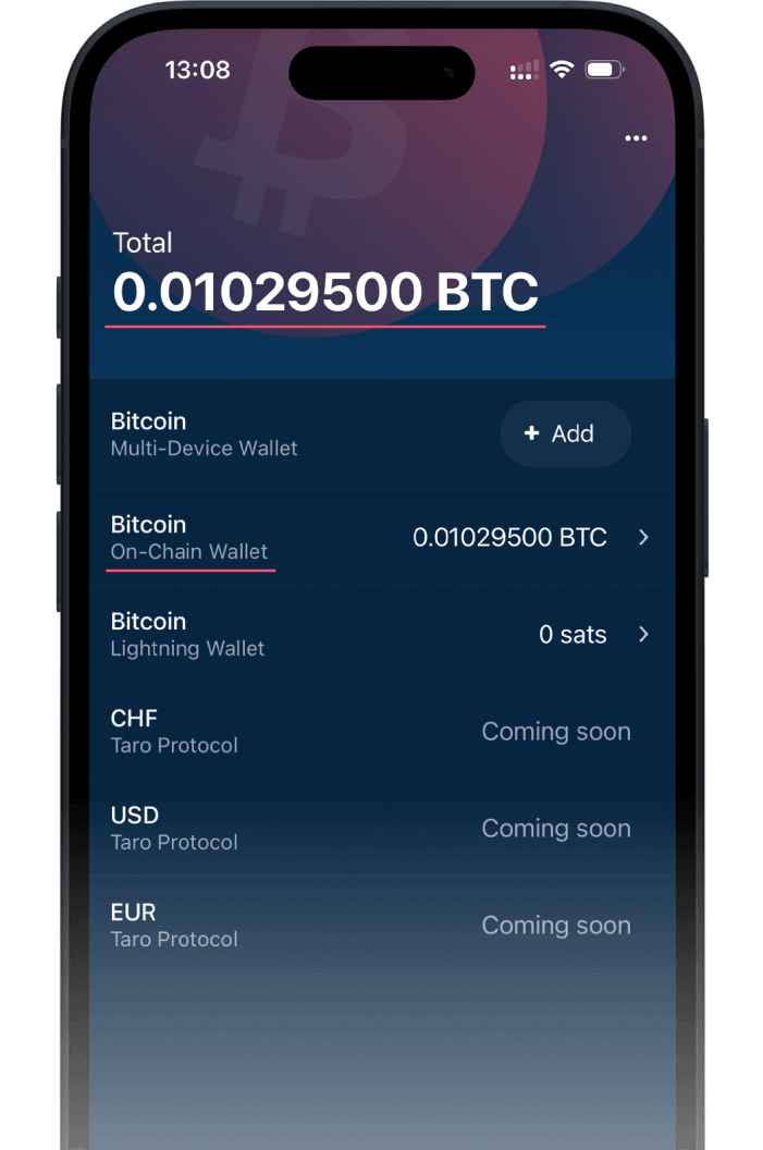Die BTC Taro Wallet kombiniert clever das Beste aus beiden Welten: die Sicherheit und Unabhängigkeit, die Bitcoin-Halter schätzen, mit Funktionen wie On-/Off-Ramp und Multi-Device-Wallet, die es noch vielseitiger machen.
